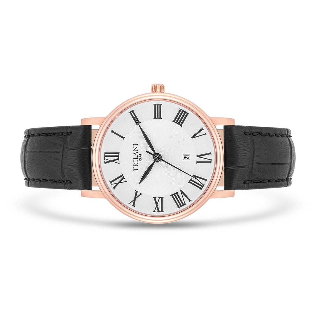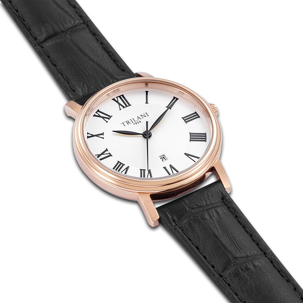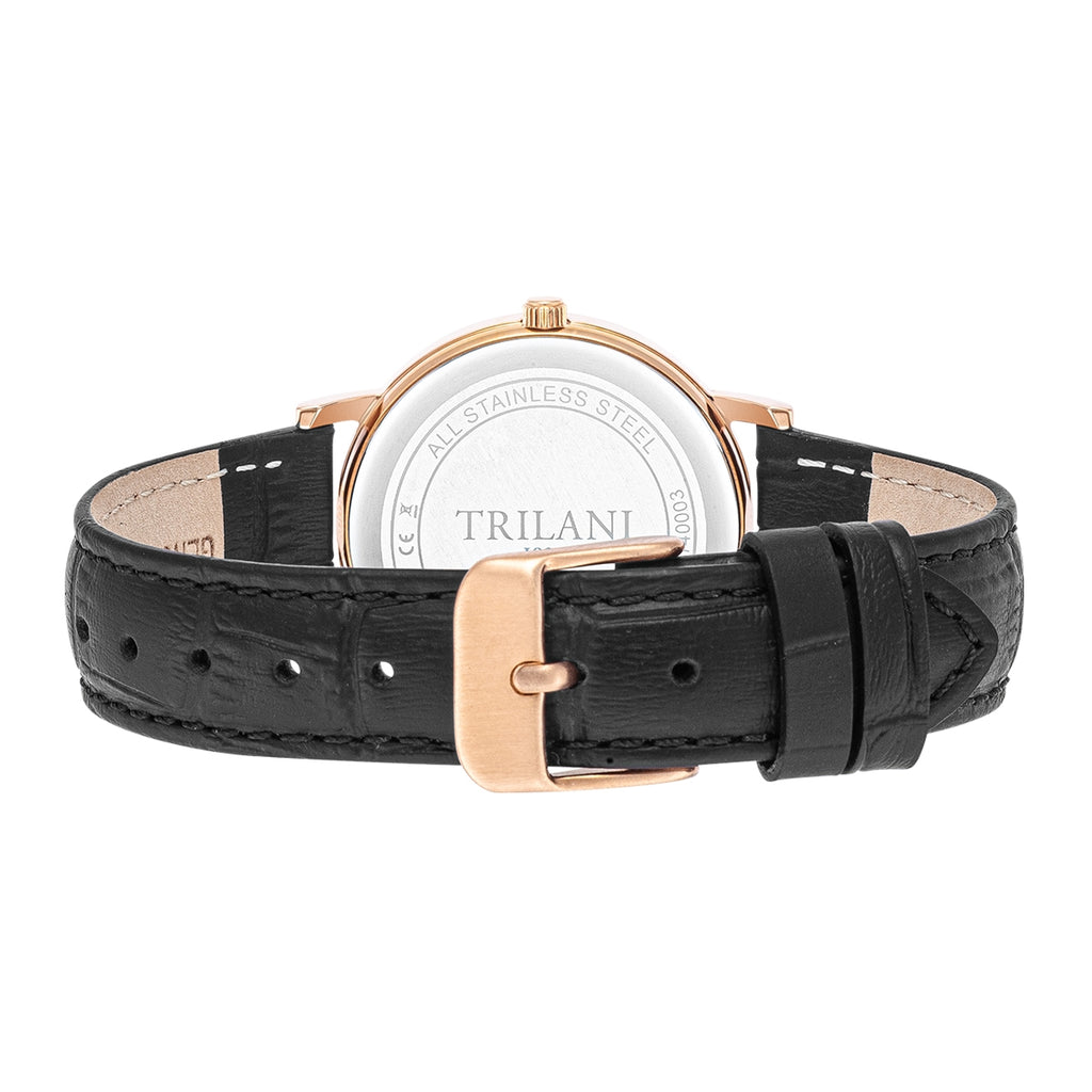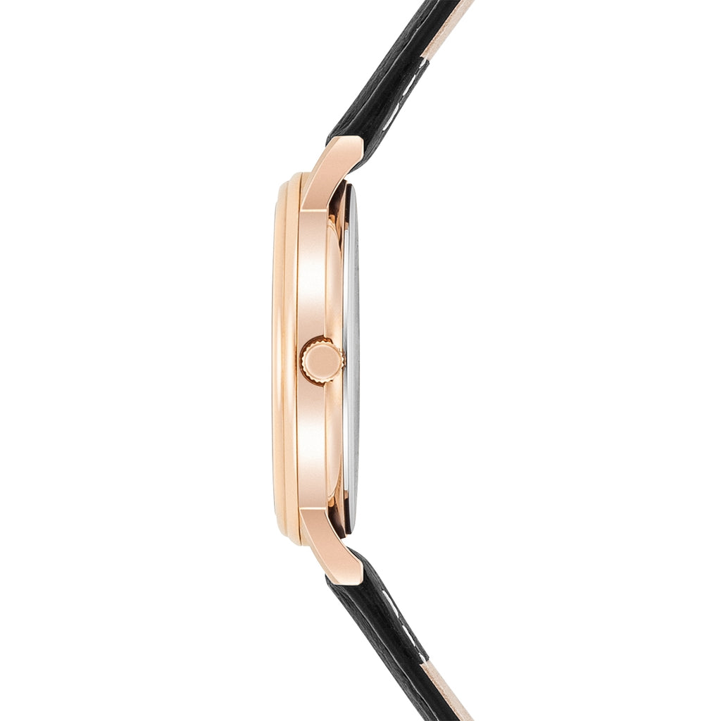 Damen Quarzuhr roségold Echtleder schwarz